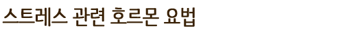 스트레스관련 호르몬은 중추, 말초, 자율신경계와 연관돼 각종 증상들을 유발합니다. 통증, 우울증, 습관성 tic, 소화불량, 설사, 변비, 중풍후유증 등이며, 스트레스관련 이상을 조정하는 것은 치료의 기본이 됩니다.